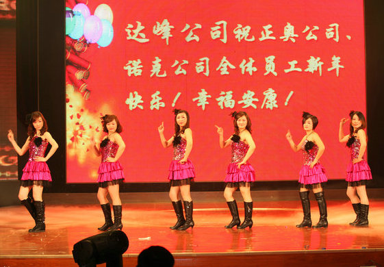 晚會(huì)在喜慶的歌伴舞《美麗的心情》中拉開帷幕,也拉開了2012年新的開始;一線工人《時(shí)尚秀表演》藝術(shù)化的再現(xiàn)工人快樂勞動(dòng)過程,展現(xiàn)了公司青年職工的青春與活力;此次晚會(huì)還特別邀請了邁克爾杰克遜的模仿秀,恒通公司、達(dá)峰公司選送的精彩節(jié)目給觀眾帶來無窮的樂趣;由公司領(lǐng)導(dǎo)王榮華領(lǐng)銜表演的歌曲聯(lián)唱給大家留下了深刻的印象,博得陣陣喝彩;特別是公司總經(jīng)理喬虹演唱、職工伴舞的《今夜無眠》節(jié)目將晚會(huì)推向了高潮,讓大家仿佛置身于中央春節(jié)聯(lián)歡晚會(huì)之中,晚會(huì)抽獎(jiǎng)節(jié)目再次把晚會(huì)氣氛推向高潮。